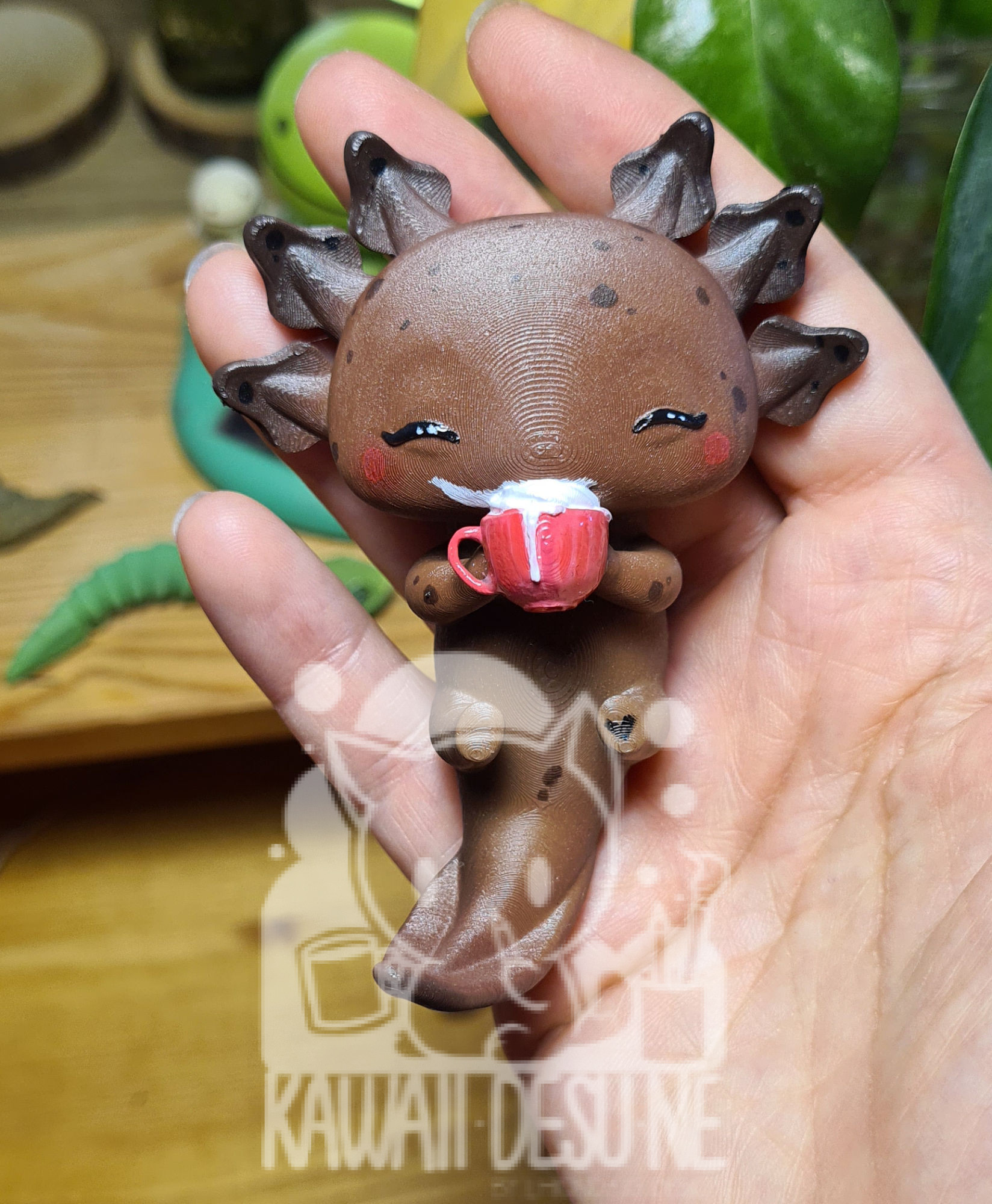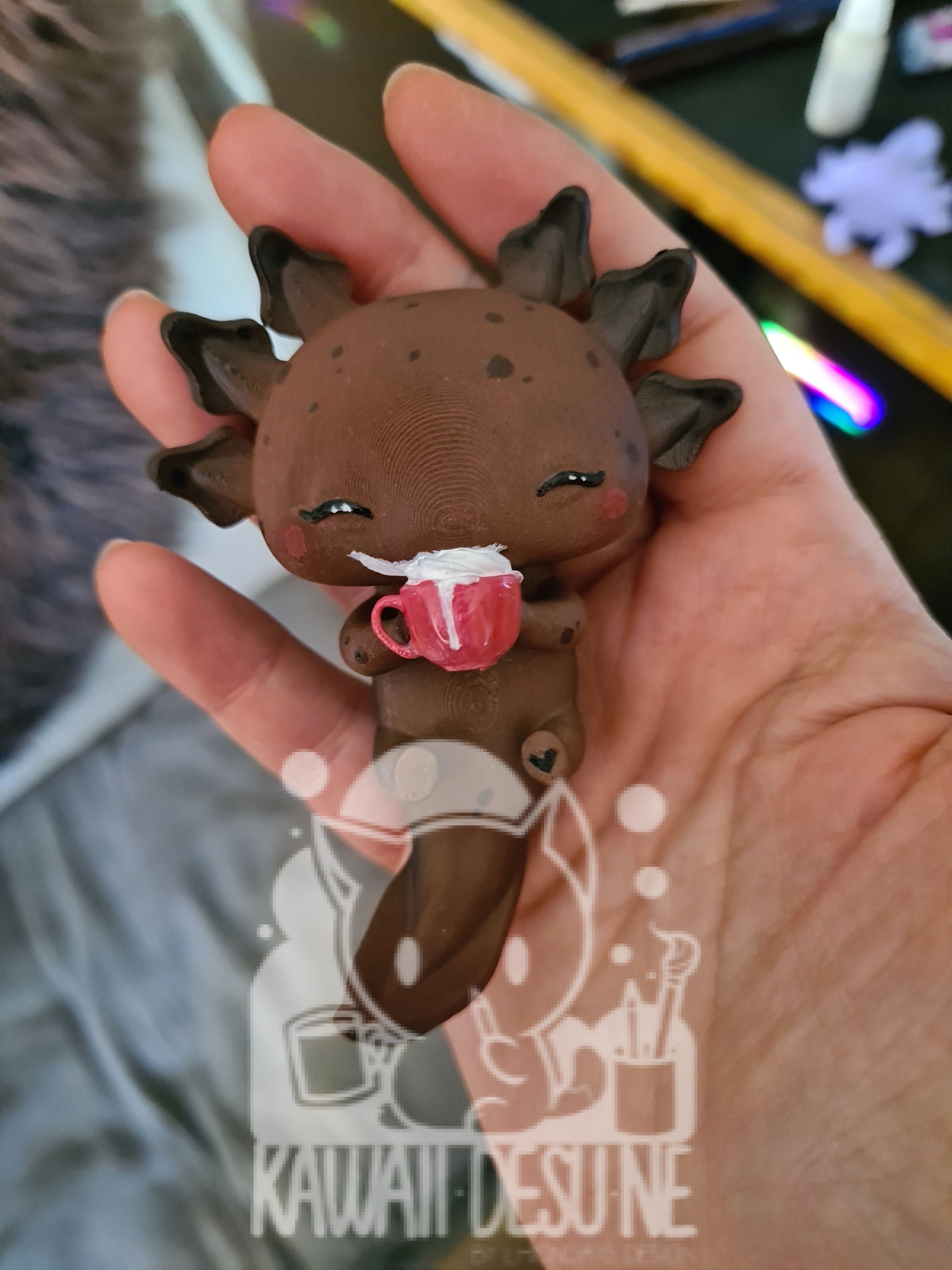 Nach dem Druck wurde das Axolotl bemalt, im Anschluss mehrfach mit UV Lack geschützt(lasst es aber trotzdem nicht dauerhaft in der Sonne sitzen!).